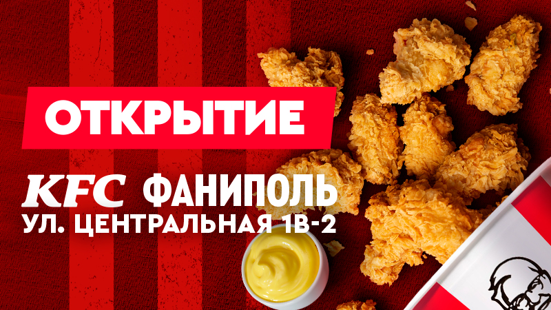 12.11.2025 в 12:00 состоится торжественное открытие ресторана KFC Фаниполь авто по адресу: